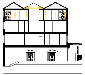 The project is located on London Road, the aim of the project is to develop the original building into one that meets the requirements for an office space whilst developing in other features, my building consists of two balconys, floor to door windows which span in every available spot within the build, louvers to allow as much light as needed in, a hacksaw roof with two sky lights, and finally, bottom floor to ceiling glass panels that span next to the staircase to maximise light intake within such a crutial area of the building. Daylight factor and illuminance levels are monitored in this project to produce the most efficient building possible and to develop our work further than just visual benefits.