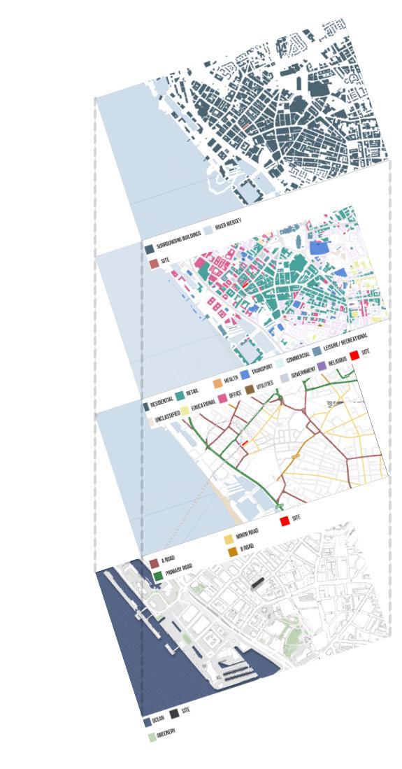 The project is located inbetween Victoria Street and Matthew Street, these two streets provide the center with life through the day and night wit its bars, restaurants, clubs and museums surrounding it. this building, once being liverpools biggest Fruit Exchange markets, is a Grade II building, with two large auditoriums located in the center of the building, I decided to focus on the top floor, which operates as a social lounge for relaxation and drinks with the central focal point being the elevator lift which is located below the glass lantern in the gallery space. The aim of this space is to combine two floors to become almost one and to make something unique within the design process that works well in the urban style.