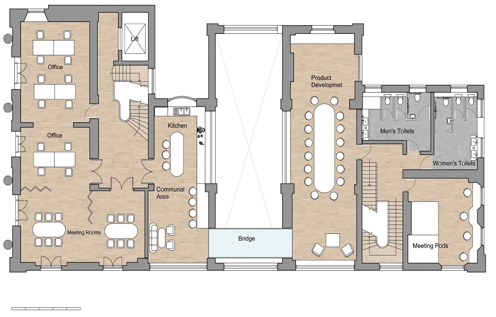 undertook a transformative project centered on the redesign of The Bank of England building in Liverpool, a Grade II-listed structure. In my role, I converted this historic building into a dynamic space comprising workshops and offices tailored for a furniture company specialising in the refurbishment of both expansive and intricate furniture projects. The aim for this project was to create a design for a company that intended to move on in ten years time and because of this I aimed to cultivate something that wouldn’t drastically alter the building. Within my design, I crafted both a welcoming reception area and functional offices on the upper levels. The palette exudes a minimalist aesthetic, yet has an aura of luxurious inclusivity.