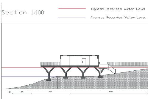 Weather or Not was of the first projects I started in my third year. For this project I had to use all the previous skills I had learnt but with an extra challenge which was the local surroundings. This was due to the fact that for this project you had to pick one of three sites one was up on a hill, one was by a river and the last was by a lake. Each had their own challenges for the designer to incorporate into their design. I decided to pick the site by the lake, therefore the factor to consider for this was flooding which the site was prone to do. To face this challenge one of my main design factors was building the entire structure off the ground onto stilts. So the building would still be accessible even with flooding.
