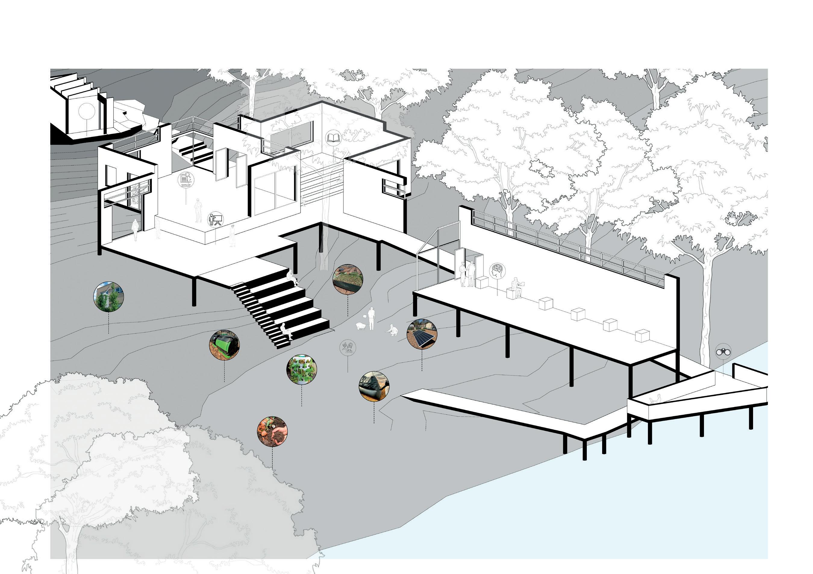 When designing this project the aim was to create a design in response to both the rural site topography while also achieving maximum accessibility with regulation considerations. The building is designed to serve both a public and private use case acting as a research space and education facility for sustainable inventions.