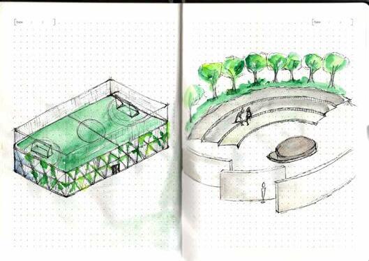 A fitness center that can draw weekly sport/ fitness activities that can attract more people often. The facade, like that of the Car park consits of a steel frame that is covered with live plants. This improves the aesthetic of the space as well as the air quality. It also improves quality of life as vegetation can directly improve human wellbeing-----