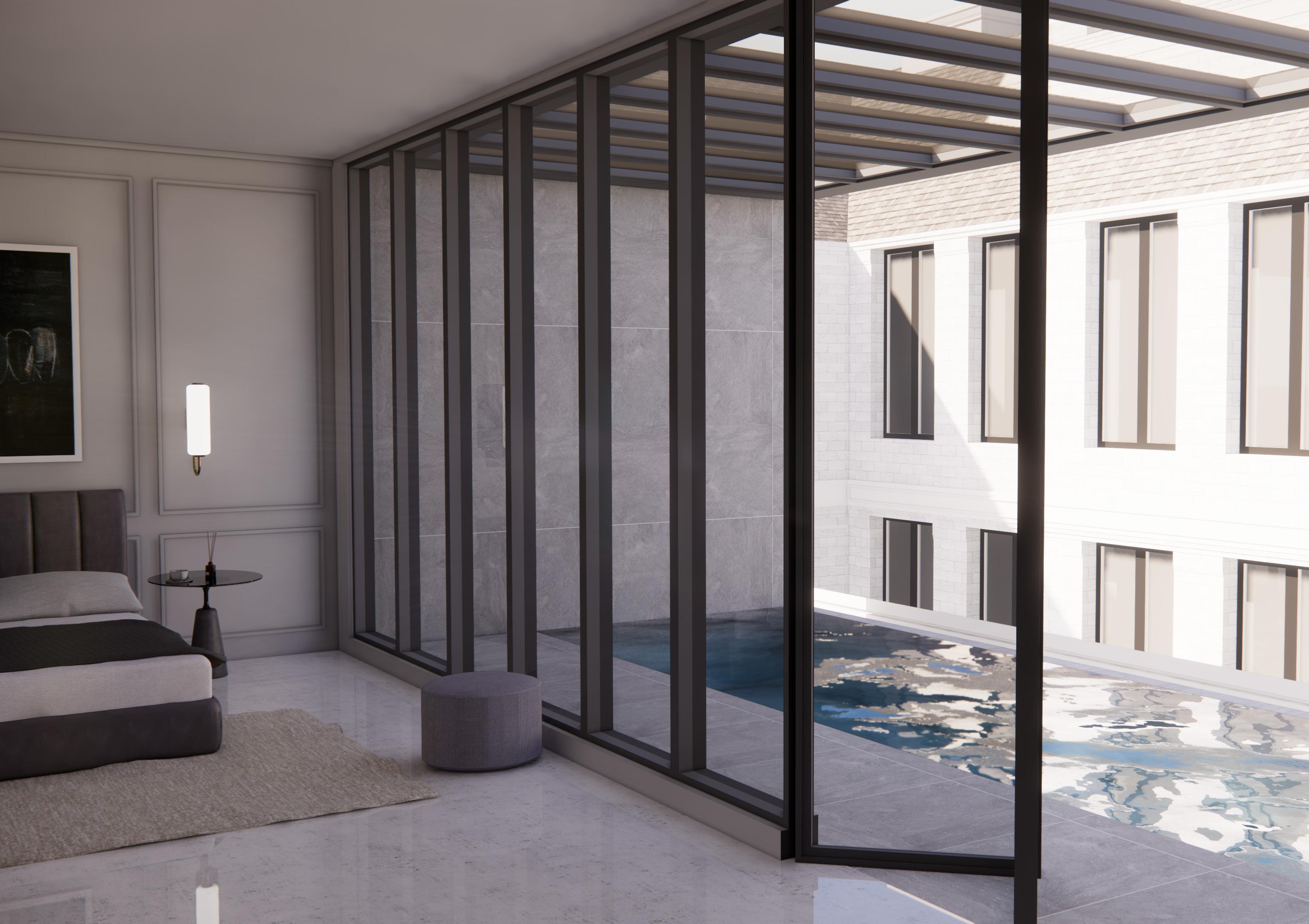 The fourth floor includes two additional hotel rooms and two large apartments that contain an infinity pool looking down into the atrium, providing guests with a unique and memorable experience.