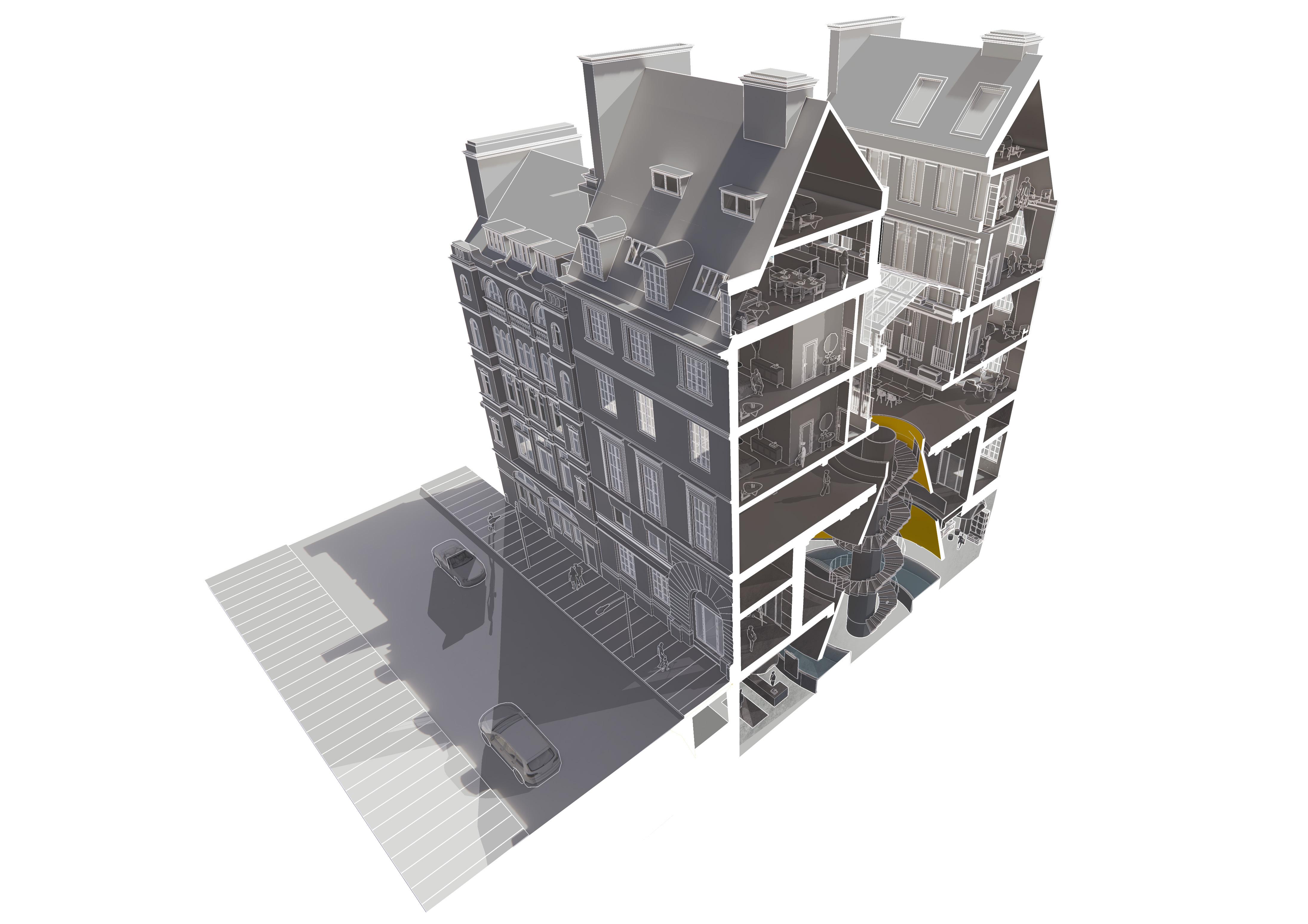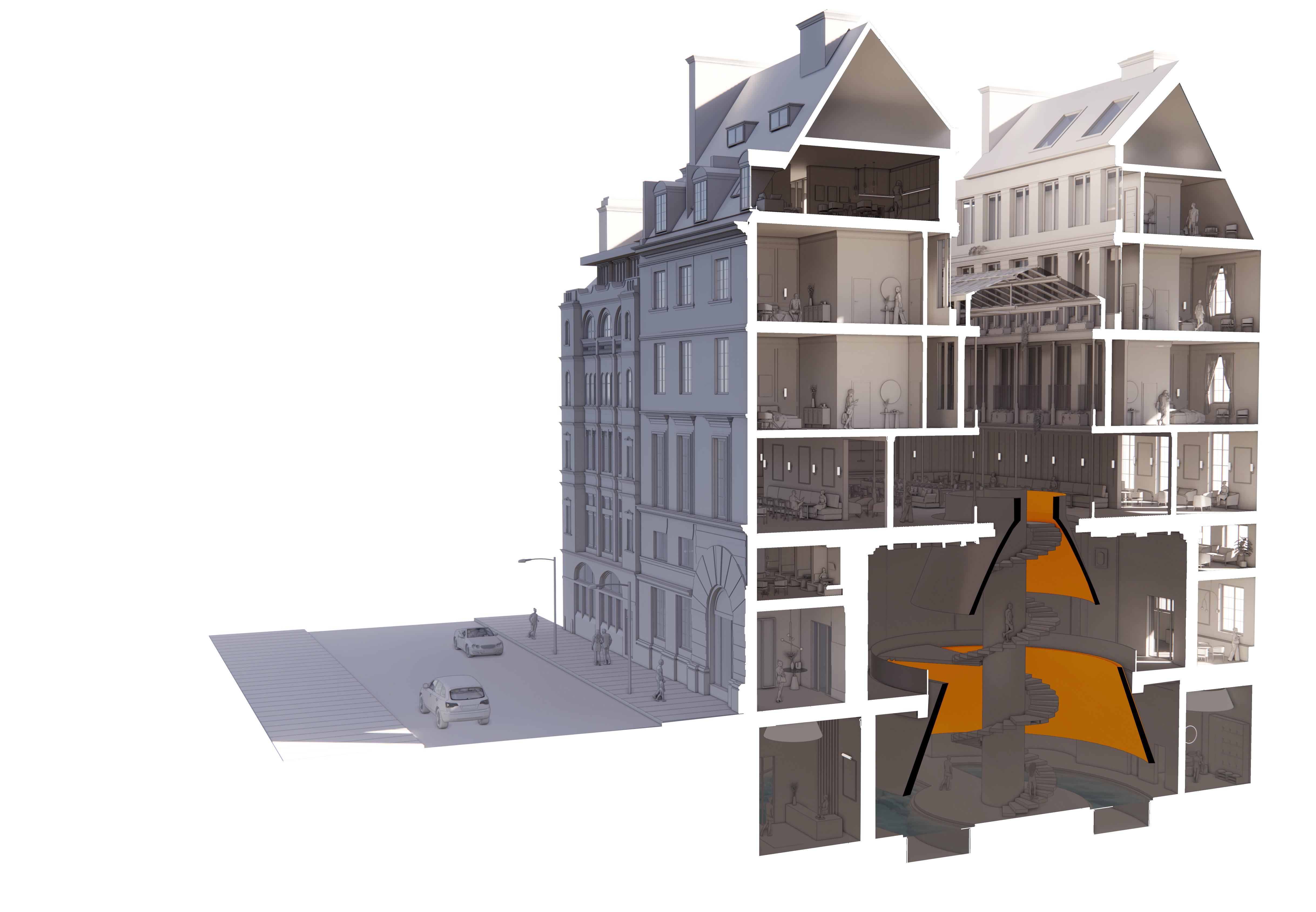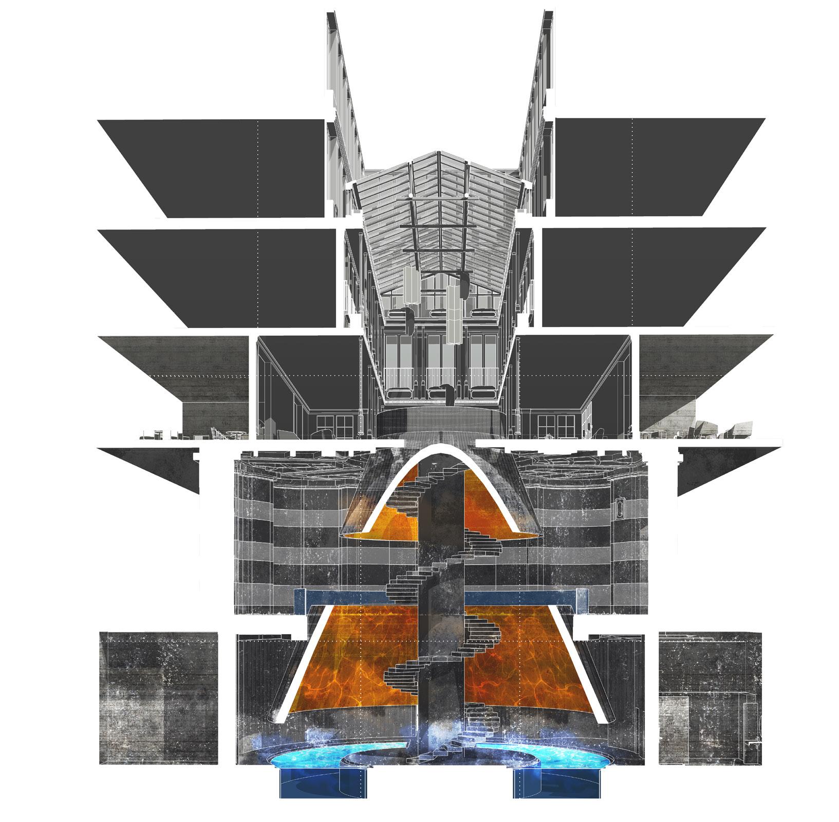 This project aims to explore how design can evoke emotions and influence the behaviour of guests. The concept for this hotel is based on the dichotomy of good and evil, with the central staircase serving as a metaphor for the choice between light and darkness. create an immersive experience that challenges guests to reflect on their own choices and the impact they have on the world around them. The central staircase serves as a powerful symbol of this idea, drawing guests in and compelling them to make a choice between