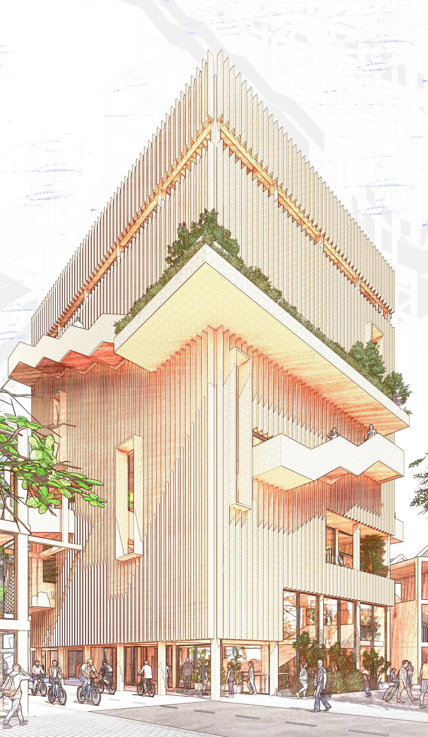 2023 Portfolio Jareth Sigat 13 thesis project: Creative Social Exchange Living CoWorking Social Cafe Arrival Working Making Social Common Living