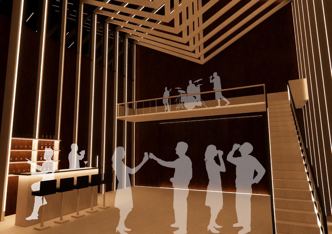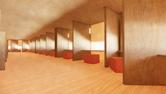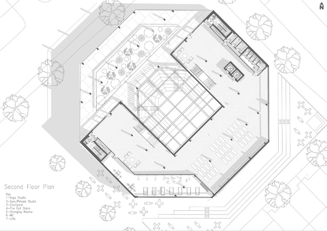 The design prioritises acoustics, incorporating CLT floors, triple-glazed roof lights, and timber panels in the performance area. The building layout strategically transitions from bustling activity at the ground level, housing the entrance and café, to quieter zones above. The third floor has a quiet reading room, followed by a yoga and fitness studio on the second floor, and a social study area on the first floor. Additionally, the performance space is situated in the lower ground level, ensuring an immersive and acoustically optimized experience.
