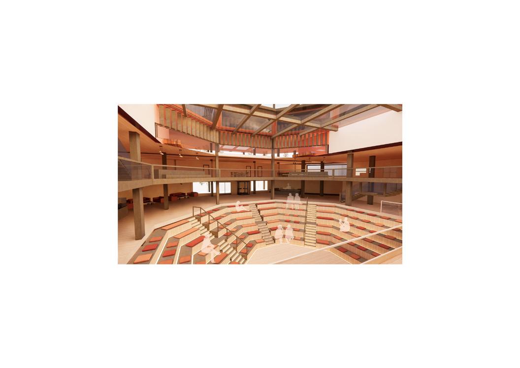 The Design includes a large central void above the performance space which maximises natural light and creates a welcoming atrium.