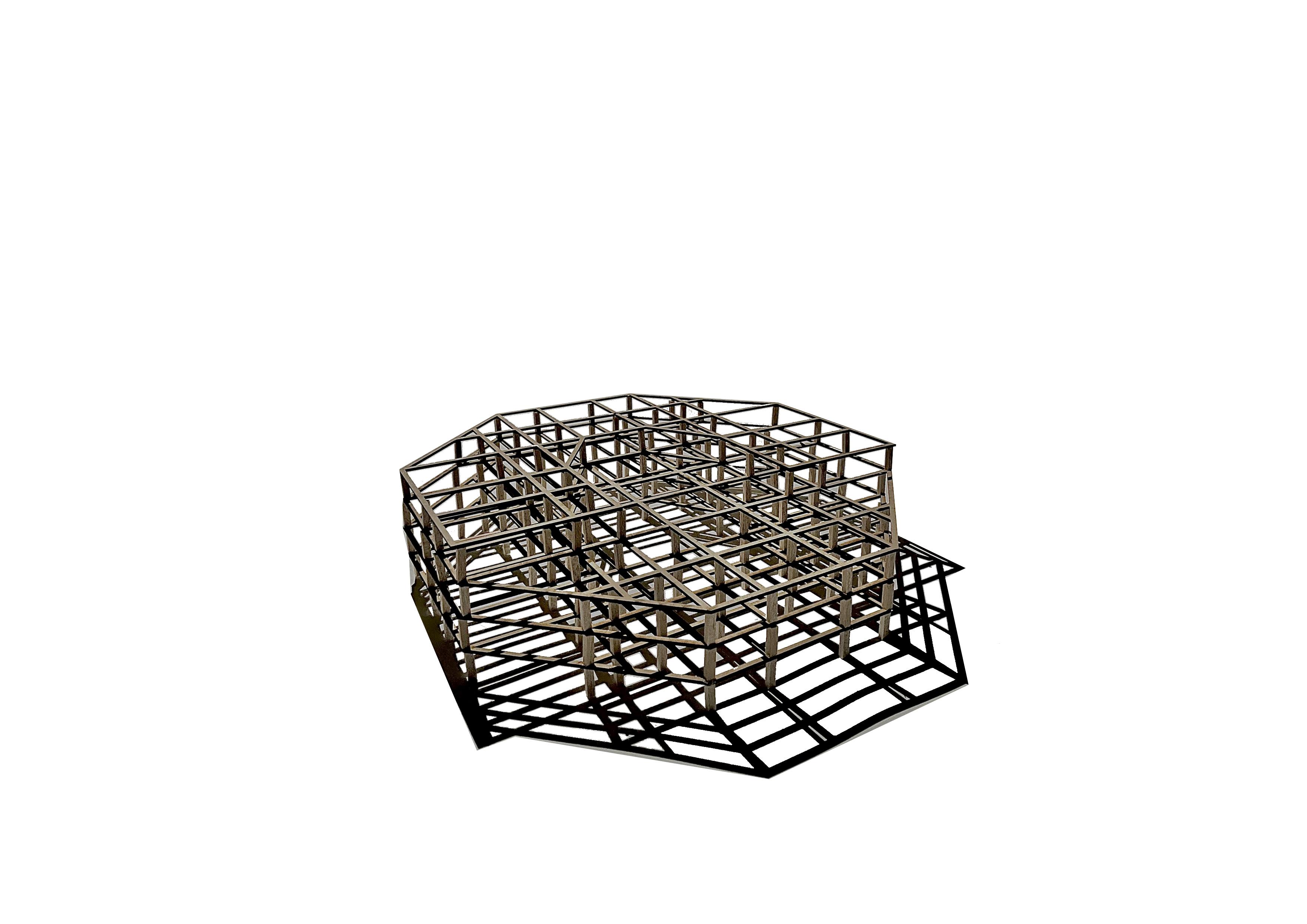 this view shows how the structure interacts with the light and creates shaodws in the space.
