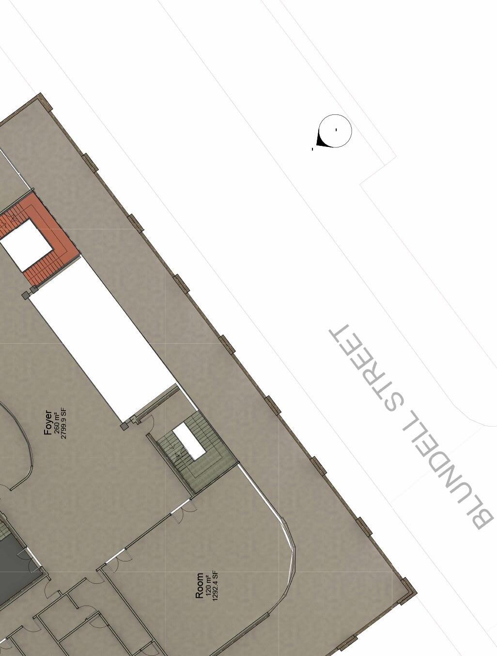 Ground floor plan of a marine life resarch facility. On the gorund floor you will find a meeting room, a lecture theatre, two public toilets, a cafe/ restaurant and the kitchen. All windows have been strayegically placed to direct the views onto the courtyard and Mersey River,