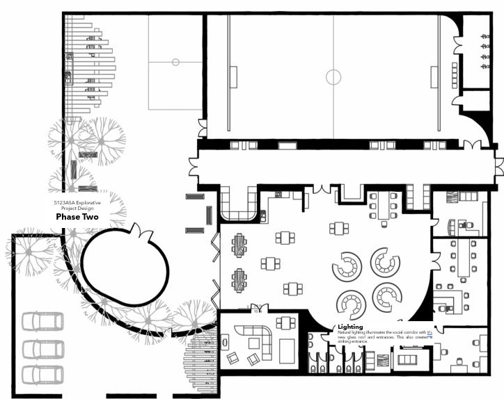 The Unity Youth Centre is an alternative social facility aimed for children and young adults between the ages of 5-19 to provide a haven around school calendar and hours. It is a multifunctional space, where areas such as the small hall and car park are rented out for fitness classes to help generate more income for the centre. The aim for this project is to make a multifunctional space, ideal for children and young adults, providing safety, sanctuary, as well as an abundance of activities and chill zones, and most importantly, improving the quality of facilities already in the building. In addition, the building needs more natural lighting and a wider variety of spaces and zones, including an outdoor garden and relaxing area. It is an important to include separate spaces for a recording studio, dance studio, gym, and sports hall, as they currently are the more used facilities, however, they need some improvement to maximize the potential the building can offer to the children and young adults.