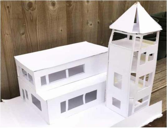 the secodn is an arranged photo board of the model i decided to produce. using plain white card it provided for great photographs with the correct lighting. done at a 1:50 scale the model included flooring aswell as windows, internal and exterior doors which all added to the depth of the model.