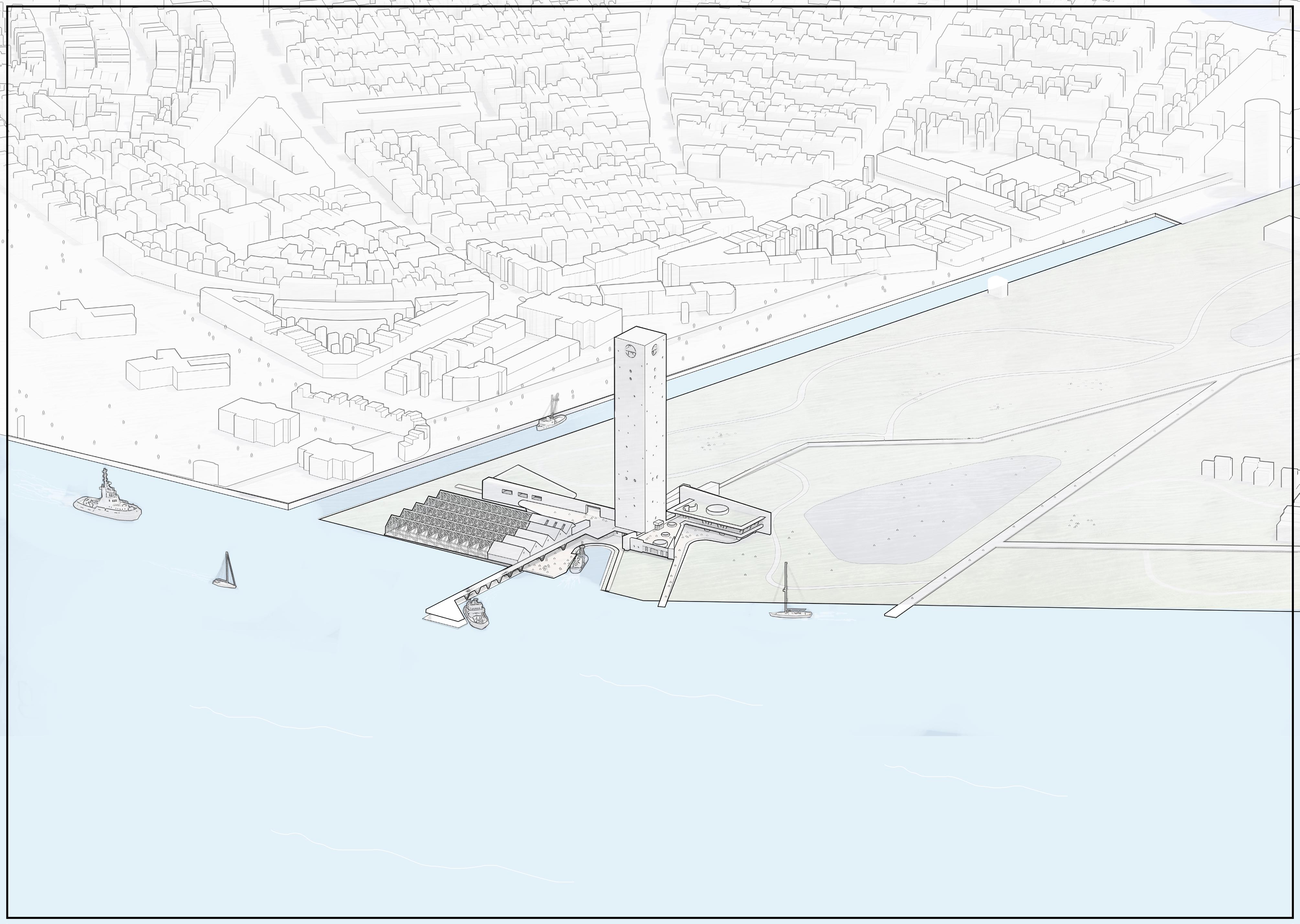Two key buildings in the marsh-land identified of retention of framework for monumental erosion. Distillery botanical gardens built, with further low-density residential areas above. Existing structures east of the Makers’ District proposed for demolition with industries relocated along eastern harbour edge.