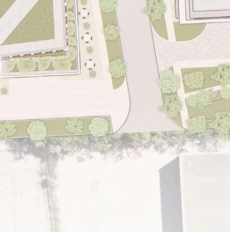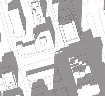 The façade design draws on the proportions of the existing school, establishing a cohesive architectural dialogue. Dark brick-inlay precast concrete cladding was selected as a neutral counterpart, complementing the original material palette without competing with it. The initial proposal included a glass volume above the school to mediate the transition to the new construction; however, as it was not required for the program, this element was removed and replaced with a more restrained glass reveal that articulates the transition. Terraces were originally introduced along the west façade, but the massing was later re ned to improve oor plate ef ciency.