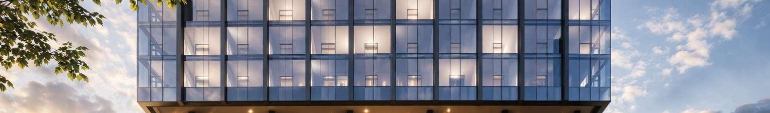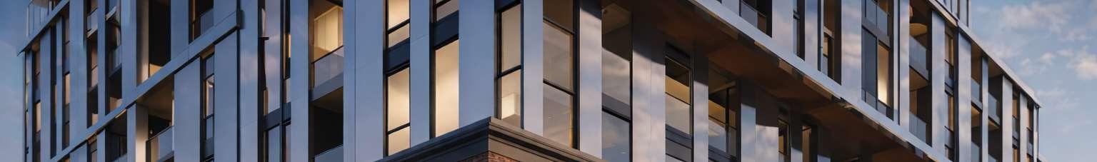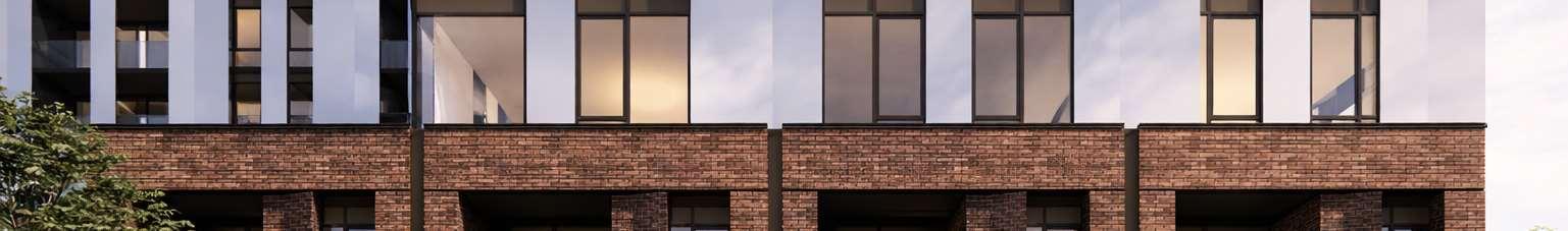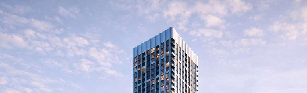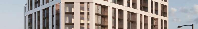 Marlow is a 32-storey building at the corner of Bloor Street and Dufferin Street, comprising 413 units with retail uses activating the ground oor. The design adopts a timeless expression aligned to the client’s identity, with vertical modulation coordinated to units demising and partition walls to reduce reliance on spandrel glazing.