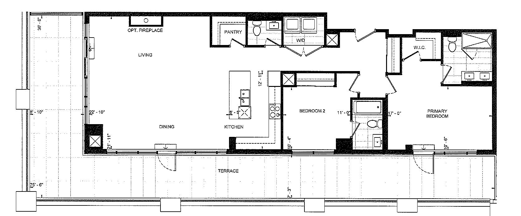 C - W-E Cross-section retail horizontal circulation, lobby vertical circulation, service areas amenity residential units