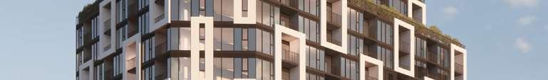 The architectural concept adopts a contemporary aesthetic, expressed through articulated façades that avoid rigid compositions, and supported by a re ned material palette. At the terminus view, the building is emphasized as a focal point through a bolder design gesture. Balcony con gurations were strategically varied according to solar orientation, supporting passive performance while enhancing façade composition. This approach was complemented by a 30–40% window-to-wall ratio that improves thermal performance by reducing seasonal heat loss and gain.