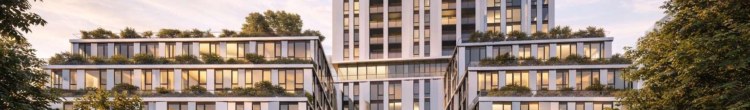 I was responsible for developing the design concept and coordinating its translation into the drawing sets, working closely with the project documentation team, consultants, and ity planners. One of the challenges was achieving a sensitive transition between the building and the adjacent low-rise neighbourhood to the east. The terraced podium mediates this change in scale, while four townhouses along Manor Road introduce a ner-grain residential frontage that further reinforces this interface.