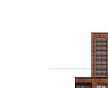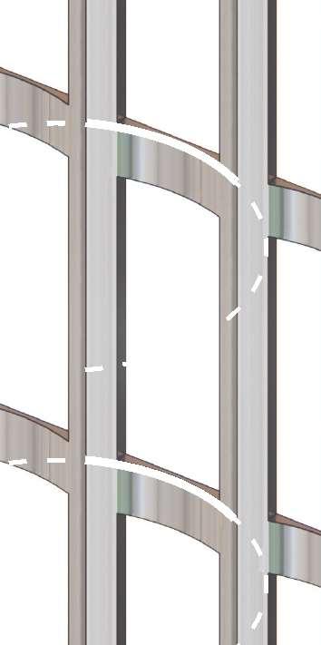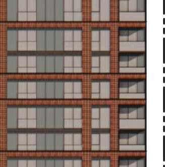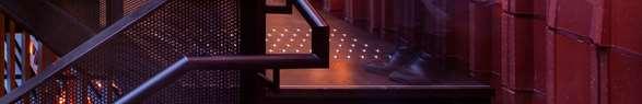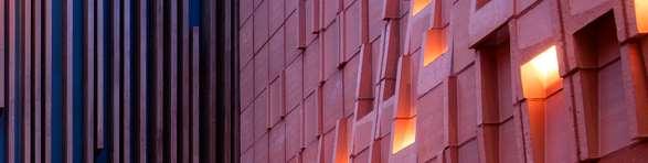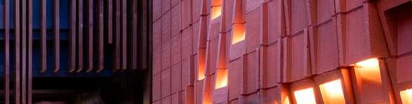The red cladding was initially conceived as a system of metal panels, selected for their boldness and contemporary expression. However, due to budget constraints, the material was revised to brick-inlay precast concrete panels, requiring a comprehensive rethinking of the façade detailing while preserving the original design intent. This shift presented a key challenge, as details developed for the thinner, more exible metal panel system had to be adapted to accommodate the thickness, jointing, support conditions, and assembly requirements of the precast panels.