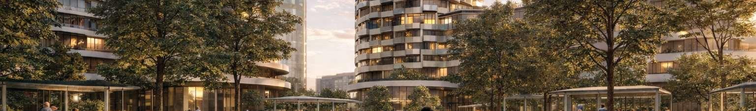 The distribution of tower heights across the site was strategically arranged according to solar orientation to minimize shadow impacts on the central open space. The architectural concept draws inspiration from greenhouses, referencing Brampton’s identity as the “Flower City of Canada.” This idea informs both the formal expression and spatial organization of the project, where transparency, lightness, and layered volumes evoke greenhouse structures. A key design challenge was applying this inspiration across multiple towers while ensuring each building maintained a distinct identity and avoided visual repetition.