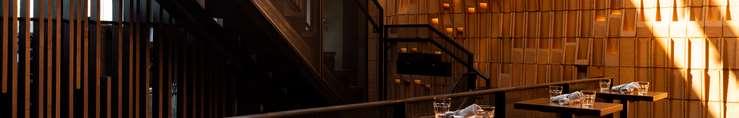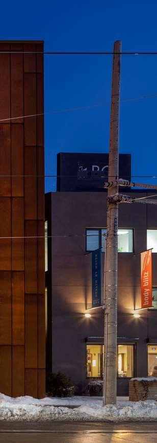 Gusto 501 is a restaurant project located along the eastern edge of Toronto’s downtown, realized as a purpose-built two-story building with a rooftop at the intersection of Queen Street East and Broadview Avenue. The design features a re ned industrial aesthetic, articulated through a Corten steel façade, terracotta brick, dark metal accents, and warm wood elements, creating a layered and inviting atmosphere.