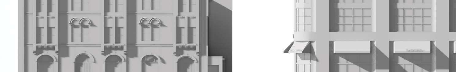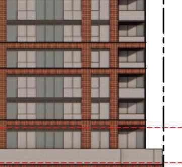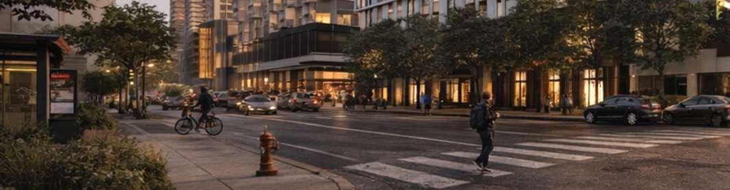 Ground-floor retail activates the public realm along Yonge Street and Hillsdale Avenue East. The streetscape design evolved through multiple iterations in collaboration with the heritage consultant to align with the vision for the site and its context. Clad in aluminumtoned metal panels, the tower presents a refined contemporary expression that enhances visual lightness, durability, and skyline presence. The design and material palette were carefully selected to complement theheritagecharacteratthebasewithoutcompeting with it.