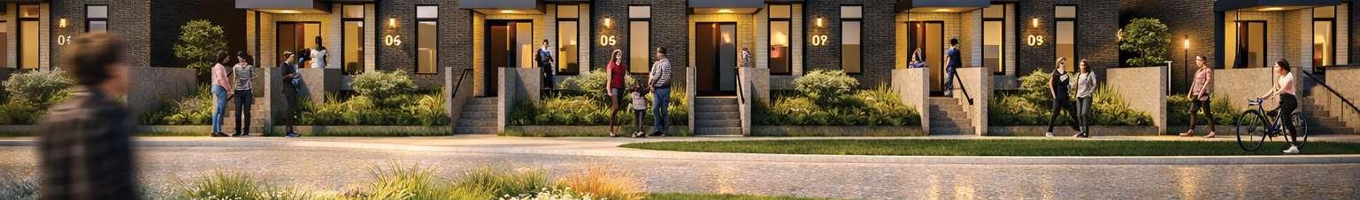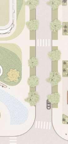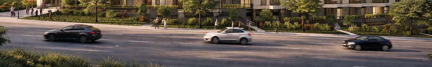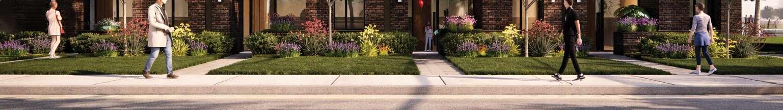 The distribution of tower heights across the site was strategically arranged according to solar orientation to minimize shadow impacts onthecentralopenspace.The architecturalconcept drawsinspiration from greenhouses, referencing Brampton’s identity as the “Flower City of Canada”. This idea informs both the formal expression and spatial organization of the project, where transparency, lightness, and layered volumes evoke greenhouse structures. A key design challengewastranslatingthisinspirationacrossmultipletowerswhile ensuring each building maintained a distinct identity and avoided visual repetition.