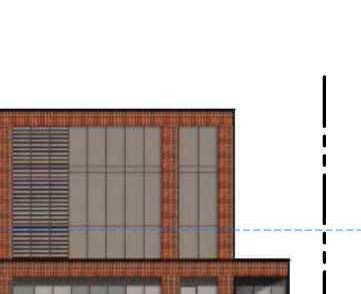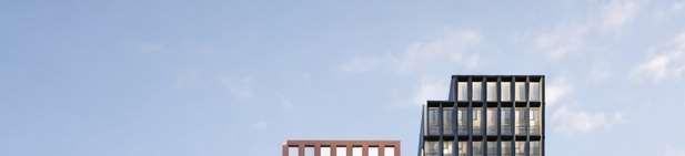 The façade design draws on the proportions of the existing school, establishing a cohesive architectural dialogue. Dark brick-inlay precast concrete cladding was selected as a neutral counterpart, complementing the original material palette without competing with it. The initial proposal included a glass volume above the school to mediate the transition to the new construction; however, as it was not required for the program, this element was removed and replaced with a more restrained glass reveal that articulates the transition. Terraces were originally introduced along the west façade, but the massing was later refined to improve floor plate efficiency.