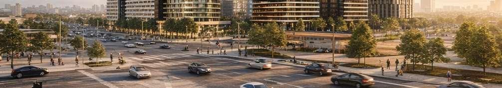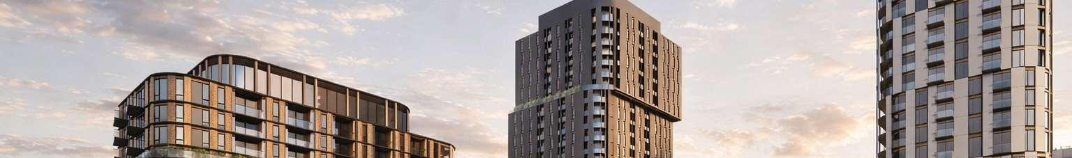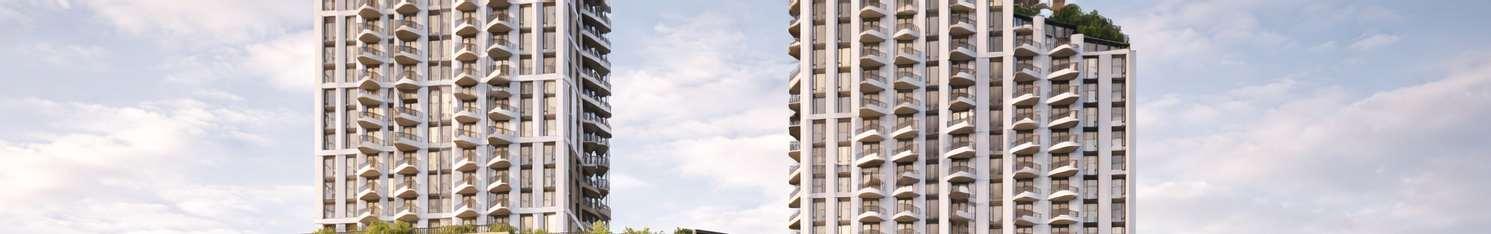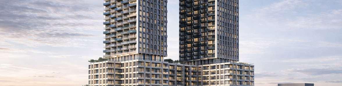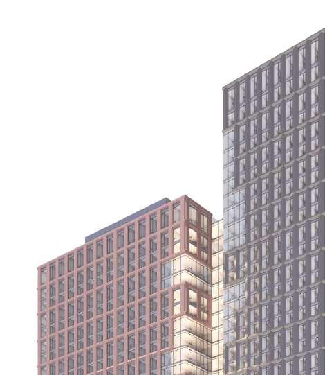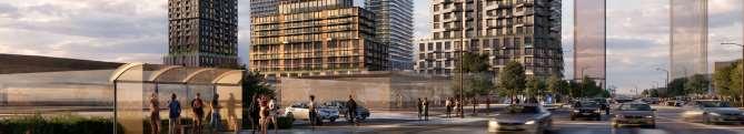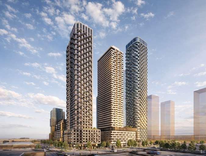 Located in Toronto’s Mount Dennis neighbourhood, the project comprisestwotowers, 34and24storeys high,risingaboveaneightstorey podium and delivering 1,003 residential units ranging from studio to three-bedroom layouts. A portion of the site is dedicated to a new public park, contributing to the neighbourhood’s public realm.
