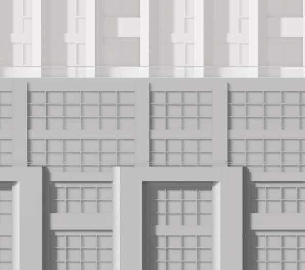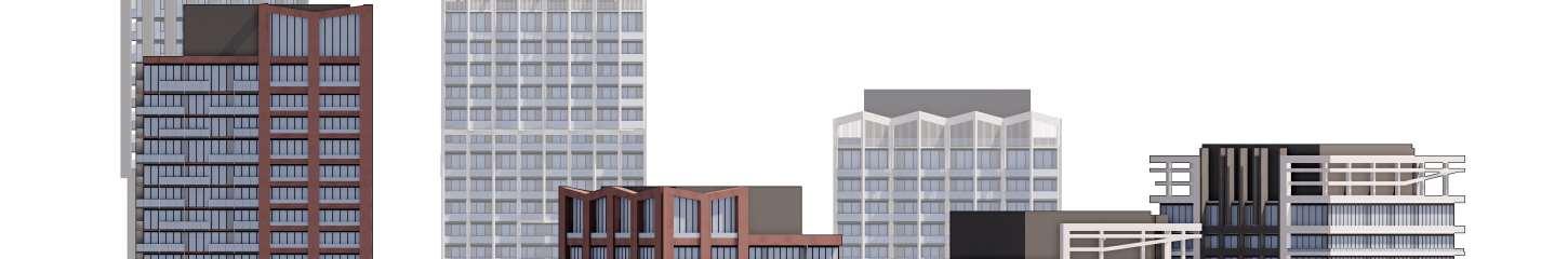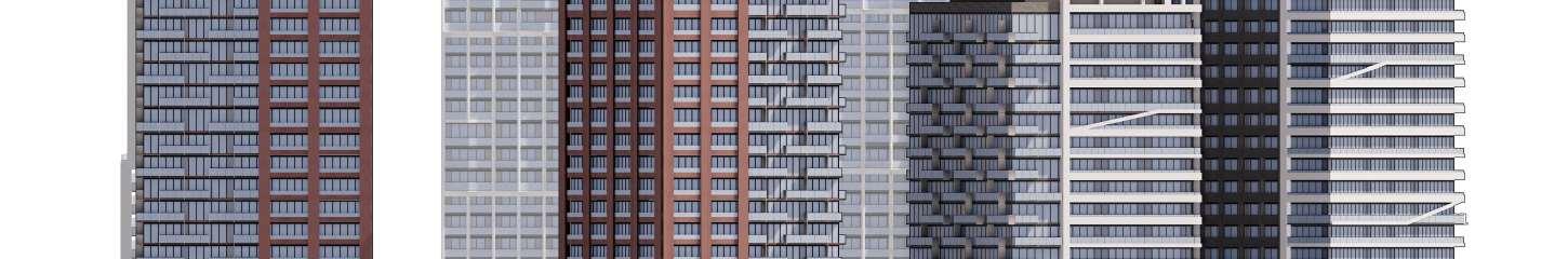 An initial submission proposed a higher datum line along The Queensway, resulting in a street wall perceived by the City as overly tall inrelation to its context andat the pedestrian scale.The massing was subsequently revised to reduce the building’s bulk along the street. A contemporary palette of light-colored panels and glazing emphasizes vertical modulation. The final façade design evolved through multiple iterations in close collaboration with the client. I led the design concept process, developing and advancingthearchitecturalexpressionthroughouttheseiterations.
