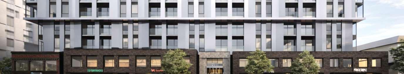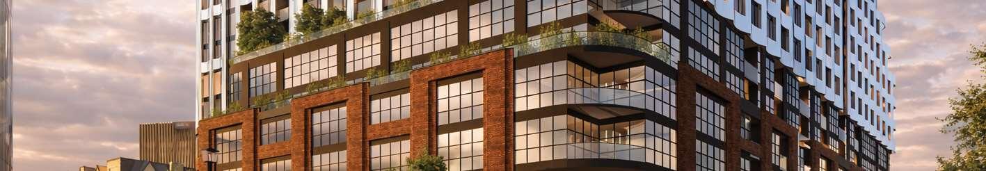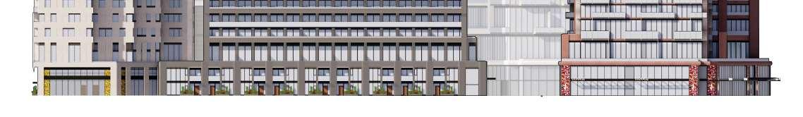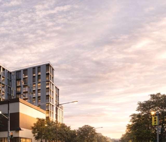I was responsible for developing the design concept and coordinating its translation into the drawing sets, working closely withtheprojectdocumentationteam,consultants,andcityplanners. Oneofthechallengeswasachievinga sensitive transition between the building and the adjacent low-rise neighbourhood to the east. The terraced podium mediates this change in scale, while four townhouses along Manor Road introduce a finer-grain residential frontage that further reinforces this interface.