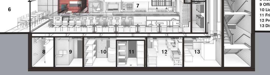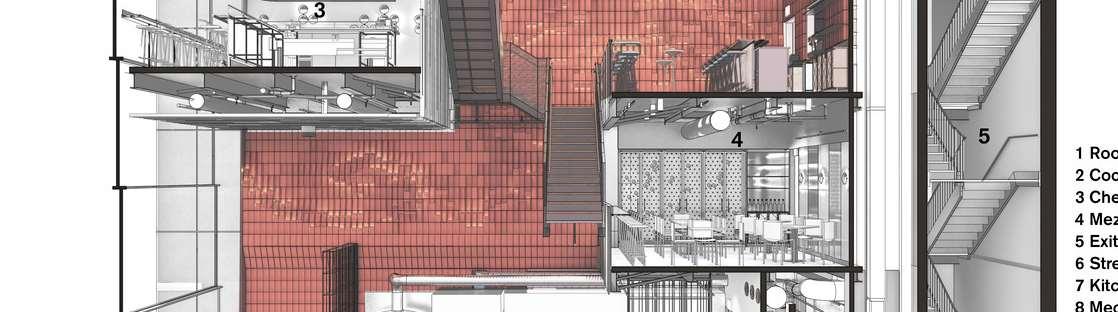 In parallel, I worked on producing construction drawings and developing millwork details for interior areas, including the secondfloor bar. The furniture and millwork were custom-designed, requiring a high level of coordination and precision.