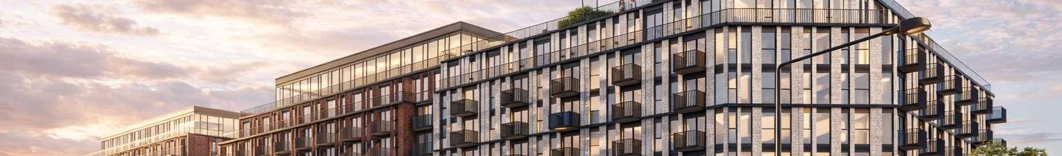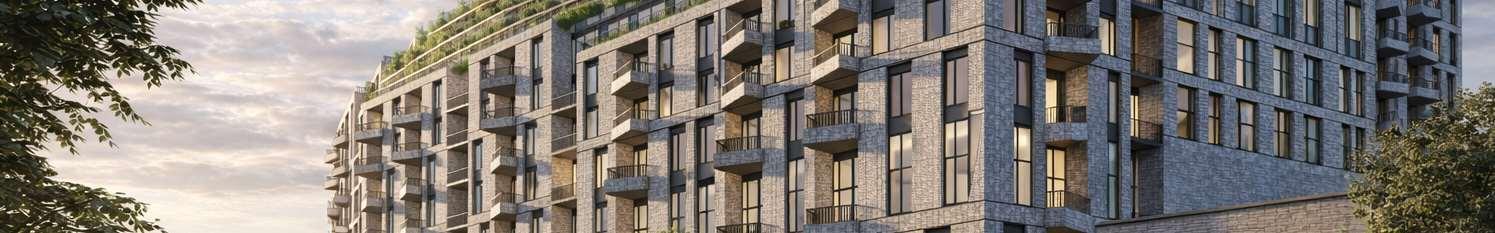 The 8-storey, 123-unit building is shaped by a modulated massing strategy that reduces perceived scale and responds to the site’s topography. Its architectural expression draws on the site’s natural character, using a refined material palette that complements Bolton’s evolving urban fabric while maintaining a strong relationship to the southern landscape edge. A material transition at the corner visually divides the building into two masses, reducing its apparent bulk. An alternative scheme explored a more fluid expression with continuous, undulating balconies.