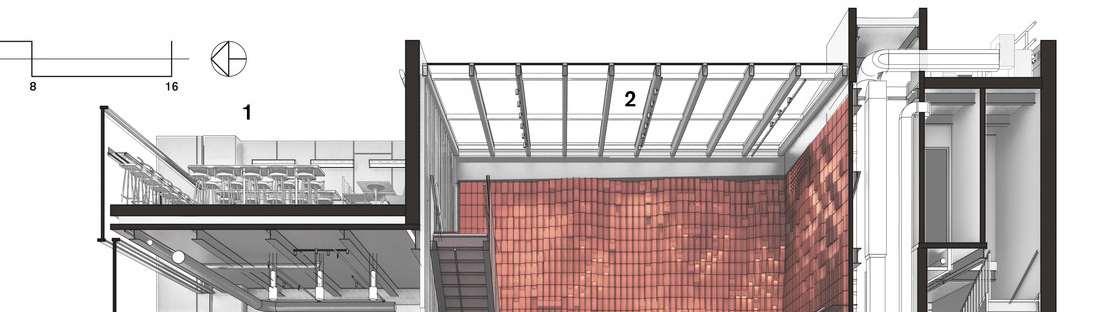 I contributed to the development of the interior material strategy, particularlyinthearticulationofthe terracottabrick.Byincorporatinga rangeof bricktypes and subtlevariations, thedesignachievesamore organic and textured surface, introducing a sense of movement while enhancing the tactile quality of the space and avoiding a repetitive or overly rigid expression. Integrated lighting within the brick further emphasizes its depth and material richness, highlighting its natural variation. Careful consideration was given to the development of constructiondetails thatallowHVACgrillestobeseamlesslyintegrated within the brickwork, ensuring they remain visually concealed and do not disrupt the continuity and clarity of the design.