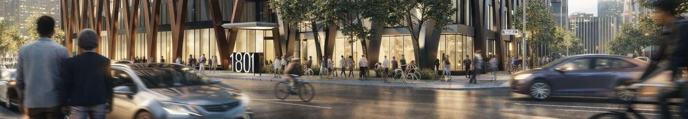 The initial application proposed a larger building footprint occupying most of the site. The revised design reduces the site coverage while maintaining density by shifting mass vertically and setting the towers further back from the street. This strategy lowers the perceived scale at the streetscape, and introduces an internal courtyard that enhances light, openness, and shared outdoor space. Aterracedpodium establishes a pedestrian-scaled frontage. The façade combines metal and precast panels, with the podium finished in warm-toned materials that add richness to the streetscape. Rounded internal podium corners soften the massing and enhance the flow of the outdoor spaces.
