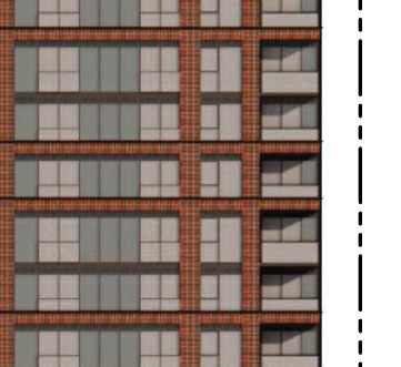 Located in front of the park, this block consists of an 8-storey podium topped by 34- and 37-storey towers, with a total of 856 units. Retail at grade activates the streetscape. The façade design of both the podium and towers is inspired by the composition of the nearby Kent School’s façade, creating respectful dialogue with the historic context.