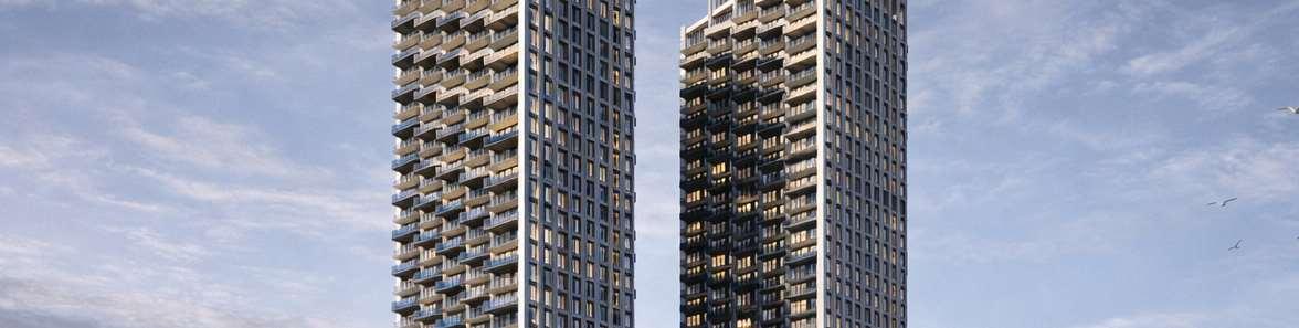Located in Toronto’s Mount Dennis neighbourhood, the project comprisestwotowers, 34and24storeys high,risingaboveaneightstorey podium and delivering 1,003 residential units ranging from studio to three-bedroom layouts. A portion of the site is dedicated to a new public park, contributing to the neighbourhood’s public realm.