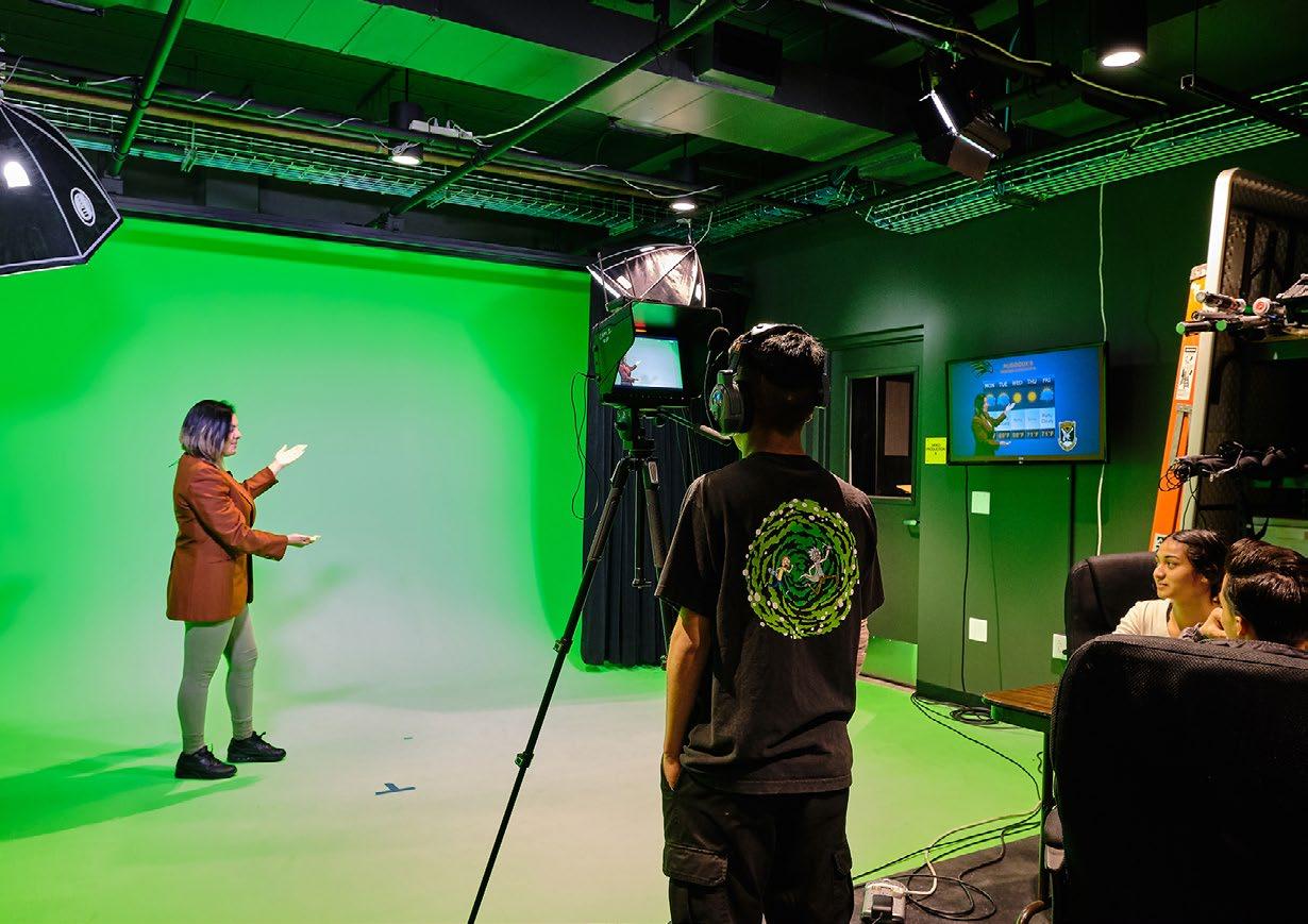 As part of this modernization, the Rubidoux HS Audio-Visual Production Classrooms were revitalized by repurposing two 1950s classrooms into a cutting-edge production studio. The new space features a green screen, a media classroom, a news desk, and a control booth, all designed with cost-effective elements like exposed ceilings, a pipe grid, and accessible technology. This modern setup not only enhances the learning experience but also empowers students to engage with the world of media production in a professional setting.