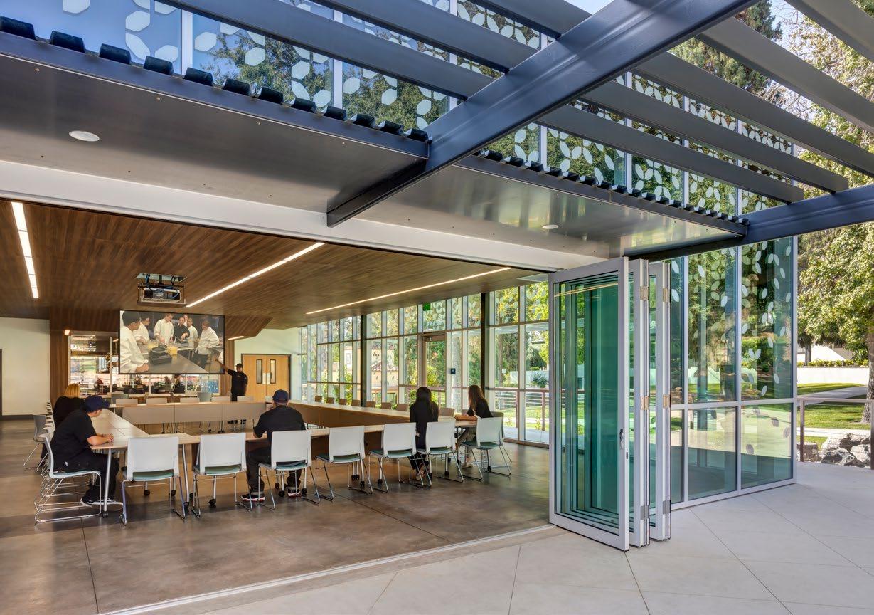 The new addition maximizes economy through a flexible design serving multiple purposes by allowing the Bistro to function for dining, board meetings, events and as a classroom.