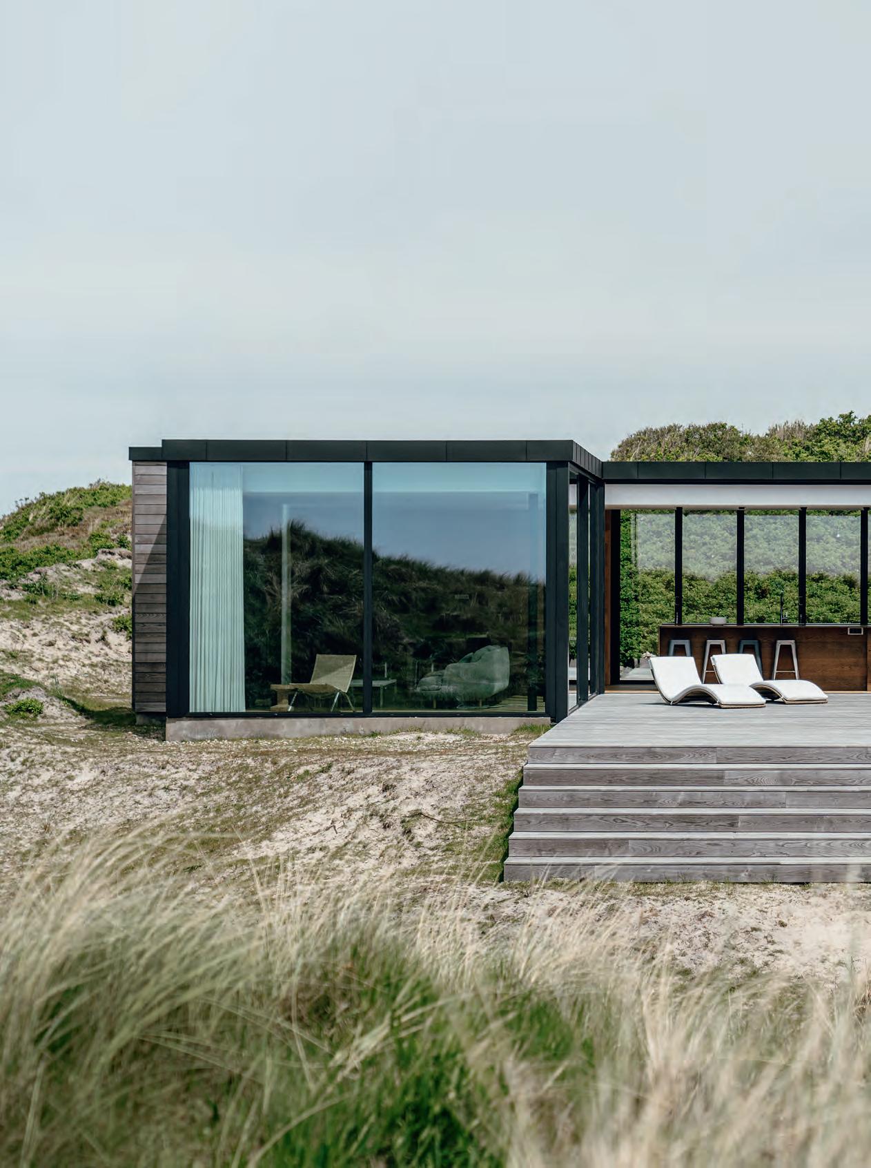 38 Dänemark –— Inmitten der wilden Dünenlandschaft steht ein schlichter Bungalow aus Glas und Stahl, in und um den man die vier Jahreszeiten hautnah miterleben kann.