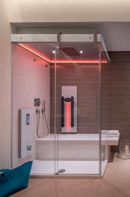 ZusätzlichvereintInfrarotdieentspannende WirkungvonWasserdampfmitheilsamer Tiefenwärme.