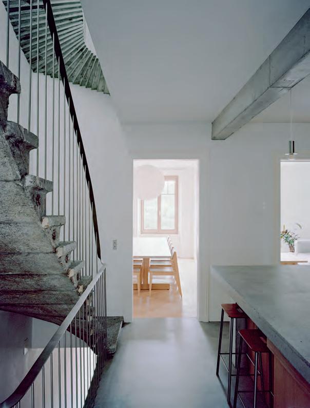 40 Wiederhergestellt. Alte Schichten und ein neues Raumgefüge in einem denkmalgeschützten Gebäude in Fribourg.