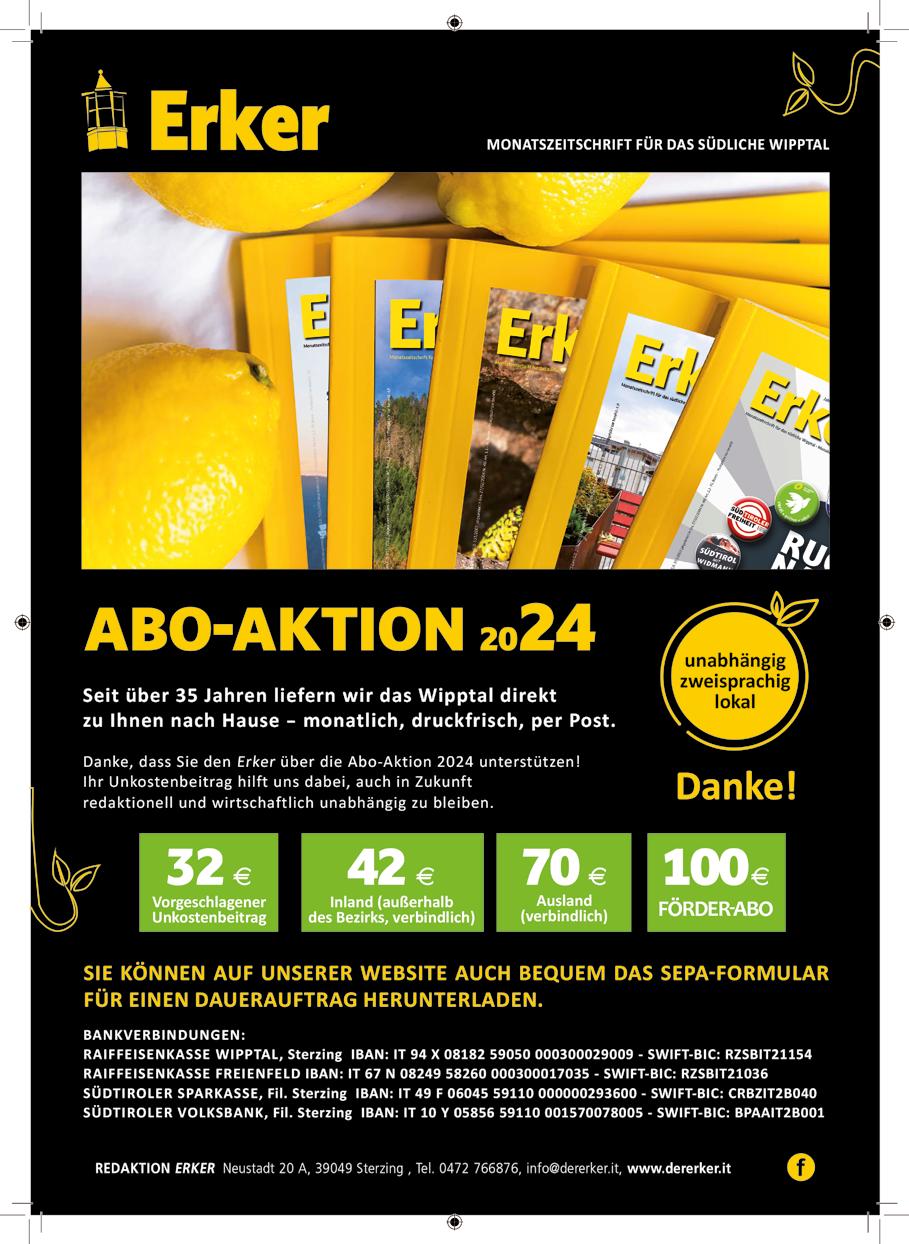 Redaktion: Barbara Felizetti Sorg (bar) barbara.felizetti@dererker.it Renate Breitenberger (rb) renate.breitenberger@dererker.it