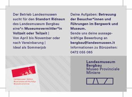 Sende uns deine aus11agekrä·flige Bewerbung an ber-,gbel:l@hu1;desmusee11.it lnformatLOnen zu Burcueiten: 0472 oss 085