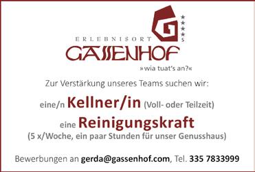 Bewerbungen an gerda@gassenhof.com, Tel. 335 7833999