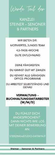 Redaktionsanschrift: Neustadt 20 A, 39049 Sterzing Tel. 0472 766876 I info@dererker.it www.dererker.it facebook.com/erker.sterzing/