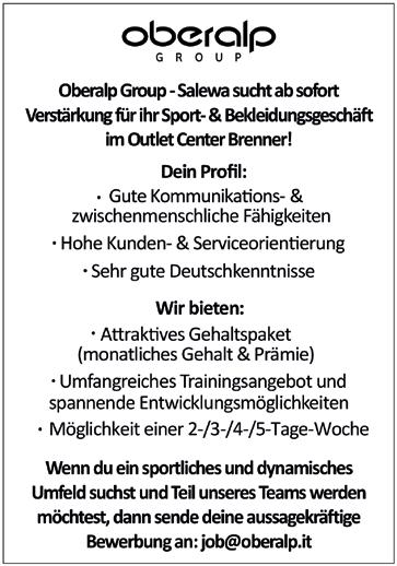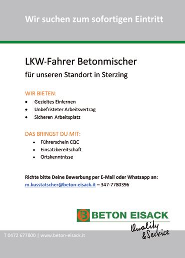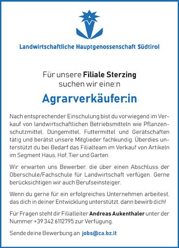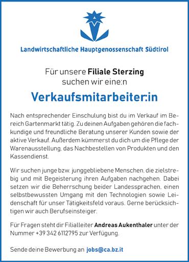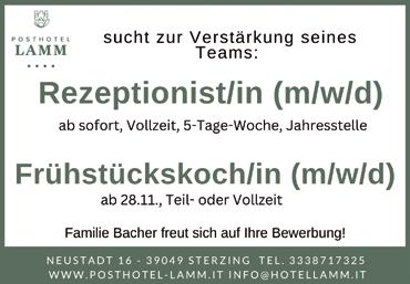 Bewerbung an: brixen@asgb.org z.H.Michael Larch
