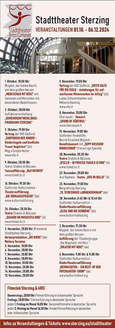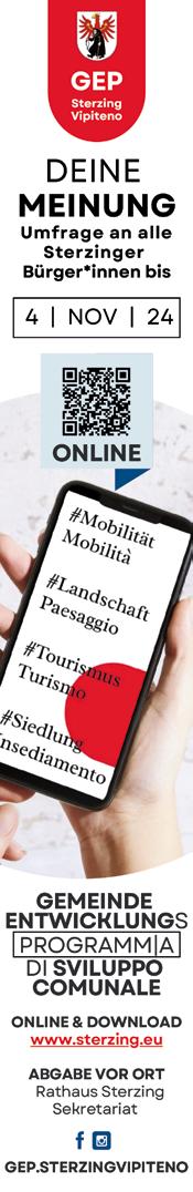 Sterzing: Leo Grossteiner (03.08.2024, Brixen). Firas Mahmoud Guellil (05.08.2024, Brixen). Zunaira Nasir (07.08.2024, Brixen). Letizia Cotza (08.08.2024, Brixen). Franz Minisini (08.08.2024, Brixen). Helena Berisha (09.08.2024, Brixen). Amin Serifi (16.08.2024, Brixen). Amalia Hodaj (16.08.2024, Brixen). Linda Dapunt (22.08.2024, Brixen). Emilia Obermüller (27.08.2024, Brixen). Selina Sparber (30.08.2024, Brixen).
