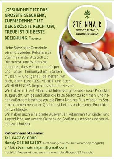 Neustadt 20 A, 39049 Sterzing Tel. 0472 766876 I info@dererker.it www.dererker.it facebook.com/erker.sterzing/