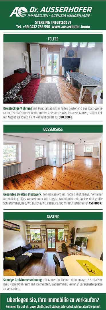 Mehrzweckgebäudes beim „Maurerhof“, Bp.497, versch.Gp., K.G. Jaufental. Alois Leitner, Innerhäuser, Innerratschings: Errichtung eines Hackschnitzellagers beim „Plottnerhof“, Bp.182, K.G. Ratschings. Leitner A.G., Gasteig: Errichtung einer Krananlage; Bp.477, K.G. Jaufental. Paul Wieser, Jaufental, St. Anton 14: Sanierung und interne Umbauarbeiten, Bp.436, K.G. Jaufental. Franz Frick, Ridnaun, Untere Gasse: Errichtung eines landwirtschaftlichen Maschinenraums und überdachter Fahrradstellplätze, Gp.714, K.G. Mareit. Florian Wurzer, Ridnaun, Ried: Entfernen von Steinen, Gp.853/1 und 855/2, K.G. Ridnaun. Martin Volgger, Ridnaun, Untere Gasse: Meliorierungs- und Auffüllarbeiten auf der von Wald in Landwirtschaftsgebiet umgewidmeten Fläche, Gp.732/1 und 732/2, K.G. Mareit. Thomas Hofmann, Helga Klotz, Mareit, Kerschbaum 1: Sanierung, bauliche Umgestaltung sowie Erweiterung der Wohnung im Erdgeschoss beim Wohnhaus „Wurzerhof“, Bp.466, K.G. Mareit. Neue Rosskopf GmbH, Telfes: Erneuerung und Ausbau der Beschneiungsanlage, Gp.1006/2, K.G. Telfes. Sterzing: Barbara und Martha Fuchs, Geizkoflerstraße 6: Energetische Sanierung, Sanierung und Erweiterung des Gebäudes, Bp.48/1, K.G. Sterzing. Milchhof Sterzing Gen.m.b.H., Jaufenstraße: Verlegung des bestehenden Wassergrabens, versch.Gp, K.G. Thuins. Barbara Hofer, Geizkoflerstraße 8/A: Austausch der Sonnenmarkise an der Fassade, Bp.51, m.A.1, K.G. Sterzing. Walter Mair, Bahnhofstraße 3: Interne Umbauarbeiten, Errichtung eines Arztambulatoriums, Bp.775, m.A.1, K.G. Sterzing. Elisabeth Wieser, Tschöfs 68: Außengestaltung des Geländes, Sanierung des Hanges, m.A.1, Bp.227, Gp.773/4, K.G. Tschöfs. Rudi Debiasi, Ralsergasse 3/D: Errichtung einer Terrasse auf dem Dach, m.A.4, Bp.72, K.G. Sterzing. Margareth, Peter und Veronika Frick, Maria Niederkofler, Gänsbacherstraße 26: Bauliche Umgestaltung und energetische Sanierung für die Errichtung einer neuen Wohneinheit, Bp.374, K.G. Sterzing. Neue Rosskopf GmbH, Tschöfs: Erneuerung und Ausbau der Beschneiungsanlage, Bp.221, versch. Gp., K.G. Tschöfs.