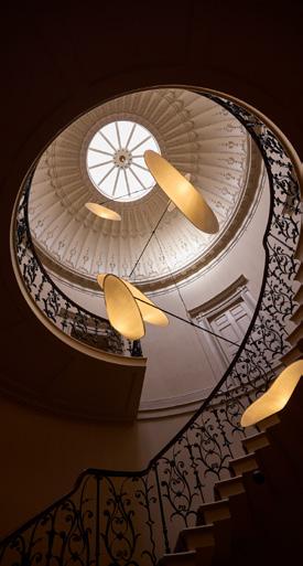 In August, I had the chance to visit the Miller House and Garden in Columbus, Indiana, a phenomenal modernist residence completed in 1957. It was realized by talented individuals from allied disciplines: architect Eero Saarinen (with Kevin Roche as the project lead within the ofce), interior designer Alexander Girard, and landscape architect Dan Kiley. Inside, visitors quickly perceive the boundary between architecture and interiors. The architects drafted a pinwheeling, nine-square plan that updates ideas from Palladio and Mies, while Girard warms the stark, white space with colorful furniture, cabinets, rugs, upholstery, pillows, art, objects, and the Millers’ personal efects. The contrast is intense and brilliant.